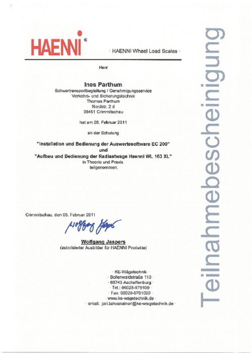 Radlastwaage Zertifikate